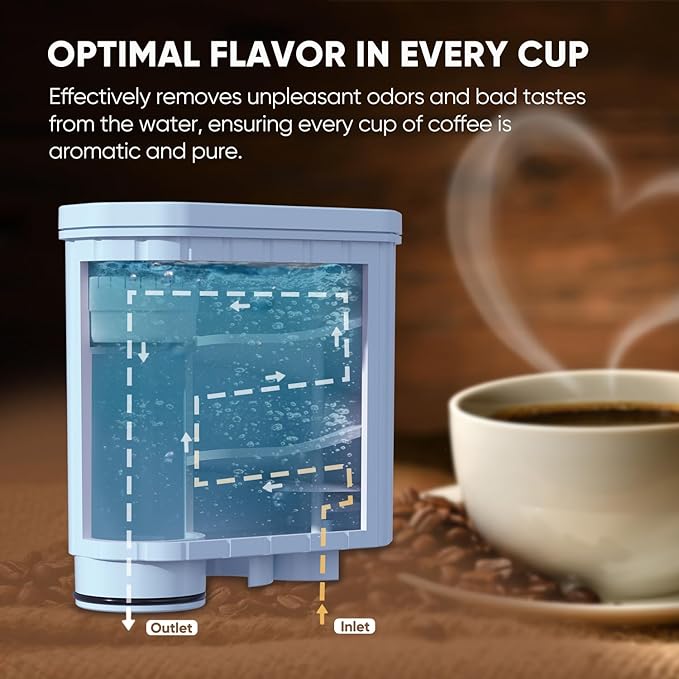 - ☕ION-EXCHANGE & ACTIVATED CARBON – Multi-layer filtration combines ion-exchange resin and natural coconut-shell activated carbon. Reduces chlorine and impurities, minimizes limescale by stabilizing calcium carbonate, and helps preserve coffee flavor and aroma.