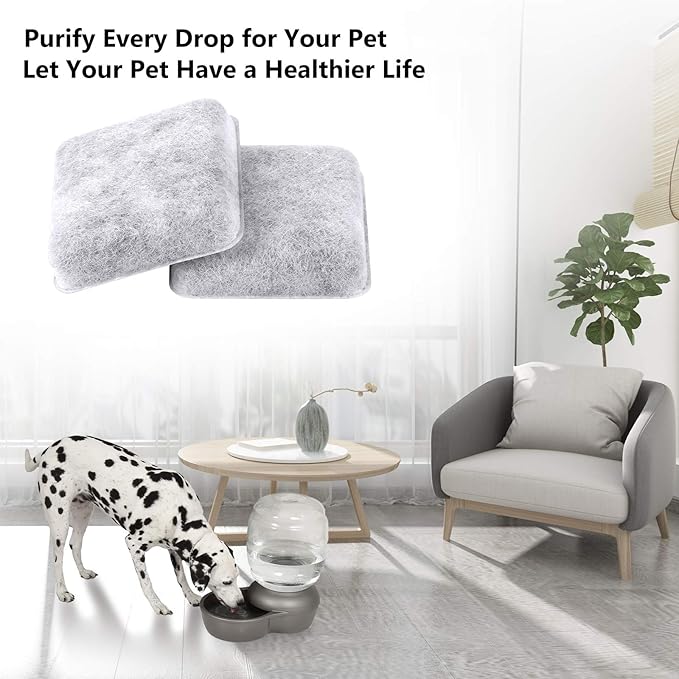 - REFINED ACTIVATED CHARCOAL: Pet water filter replacement for the dog water bowl dispenser has finer charcoal granules to increase the surface area exposure to water and maximize effective filtration. This pet water fountain filter for petmate replendish filter provides the most effective to remove bad tastes and odors from water and encourage your pet to drink more water, dog water filter replacement is good for their overall health