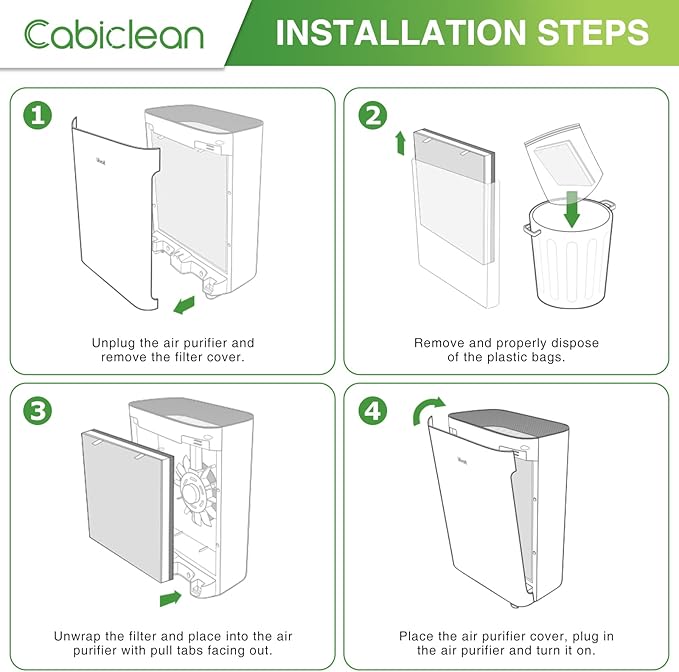 - 【3-Stage Filtration System】Cablclean vital 100 replacement filter is adopted the 3-Stage Filtration System, which effectively attaches 99.97% of airborne particles as small as 0.3 microns in the air, such as dust, smoke, pollen, hair, and Odor.