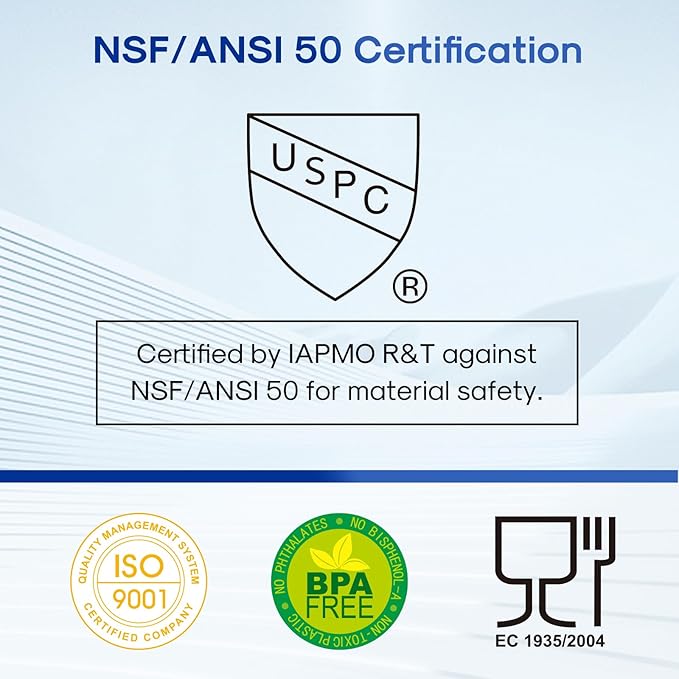- Authoritative Certifications - This filter bears significant Authoritative Certifications on markets, such as NSF / ANSI 50 for Material Safely from IAPMO, European Food Grade Regulation EC-1935/2016, BPA-Free and Australian Water Mark. Choose ICEPURE, Pursuing excellent quality.
