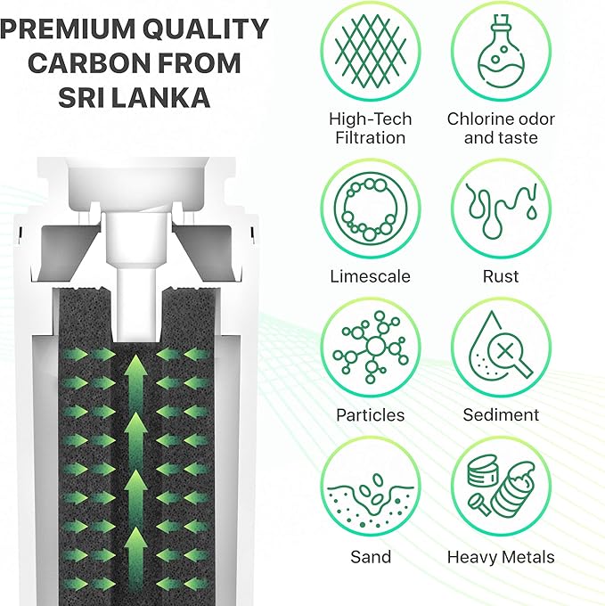 - EFFECTIVE MULTI-LAYER FILTRATION WITH LONG SERVICE LIFE: The Wildberries filter features advanced multi-layer filtration with a 0.5-micron inner layer that eliminates 99.99% of chlorine and meets Particulate Reduction Class I standards while retaining beneficial minerals essential for your household. Enjoy cleaner, healthier water with every use. Each filter efficiently purifies up to 4,800 cups (300 gallons) of water and lasts for 6 months, with installation stickers included to help you track usage and ensure timely replacement.
