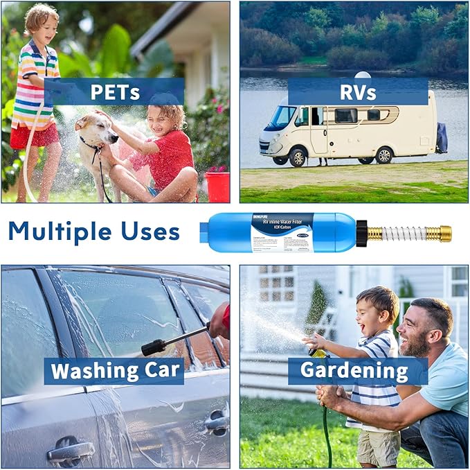 - Multiple Uses: The RV inline water filter can be attached to any standard gardening or water hose to provide cleaner, safer and healthier drinking water. It is great for RVs, camping, gardening, planting, brewing, auto washing, household, chores, pool, marines, boats, pets, trailer, water coolers, drinking water fountains, sink faucets and much more. Meeting your various needs.