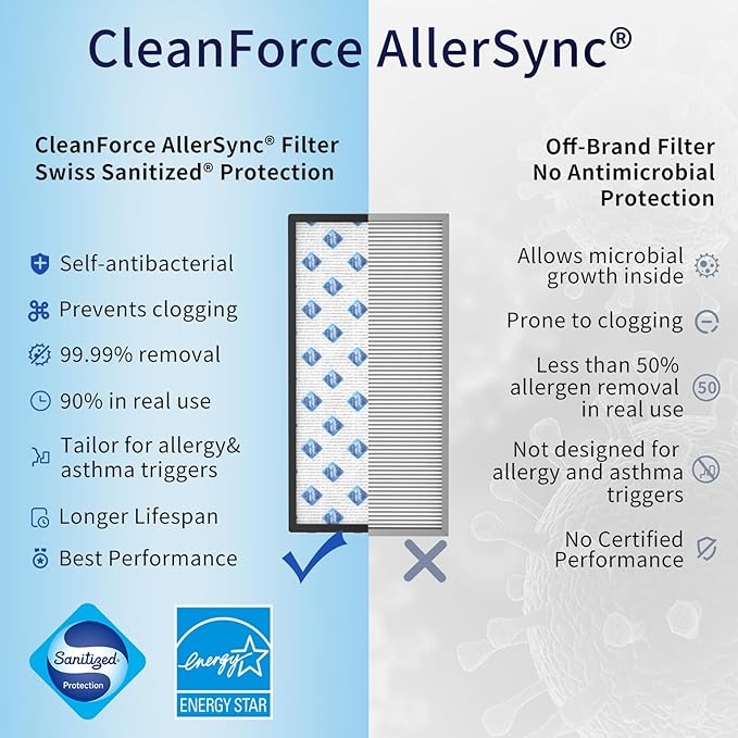 Genuine CleanForce Multi-Integrated H13 HEPA Replacement Air Filter for MEGA1000 Air Purifier, 2 PCS in Pack, filters Dust, Somke, Lint, Pet Hair Dander, Odors, etc.