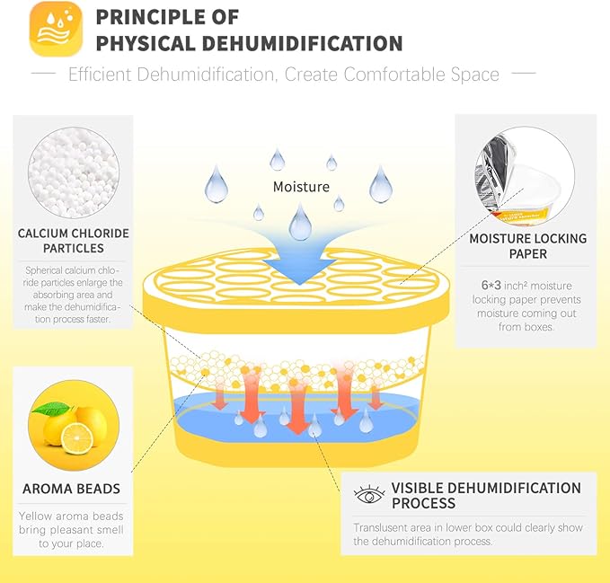 Vacplus Moisture Absorbers 6 Pack, 10.5 Oz Portable Humidity Absorber Boxes for Your Bathroom, Closet & Car, Dehumidifier with Lemon Fragrance, Yellow