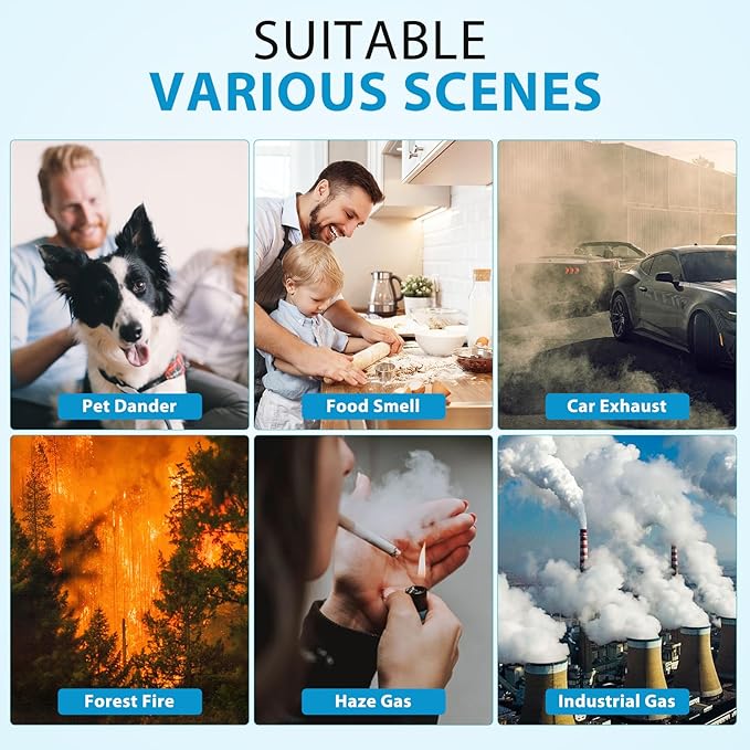 - 3-Stages Filtration System: Stage 1: Pre-filter; Stage 2: Activated carbon filter; Stage 3: True HEPA filter. Pre filters remove common household odors from the Air, reduce harmful odors such as dust, hairs, pet fur, cooking odor, smoke and more. True HEPA filters help capture up to 99.97% of airborne particles as small as 0.3 micron.
