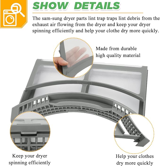- ✔✔【HIGH QUALITY dve45r6100c/a3】The upgraded dryer lint trap replacement DC61-02595A consists of a high-quality ABS frame and a metal stainless steel mesh, maximizing durability and wear resistance. DC61-02595a samsung dryer lint trap replacement debris from the exhaust air flowing from the dryer and Keep the dryer rotating efficiently, help the clothes dry faster, and the dryer is clean and odorless, keep your dryer at peak performance, and extend the service life of equipment and other components by keeping ventilation openings unobstructed and preventing overheating