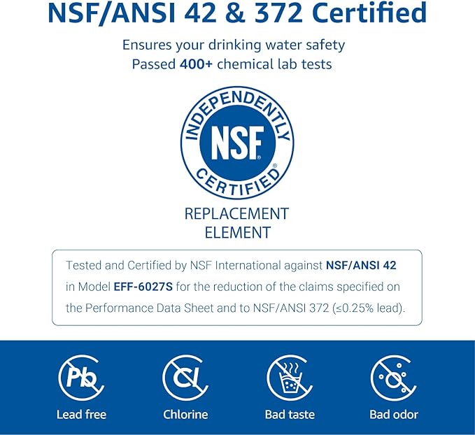 - [Fresh-tasting water] The natural coconut shell carbon block adopted by our water filter provides a better water taste by absorbing more impurities than cheaper mixed carbon block filters.