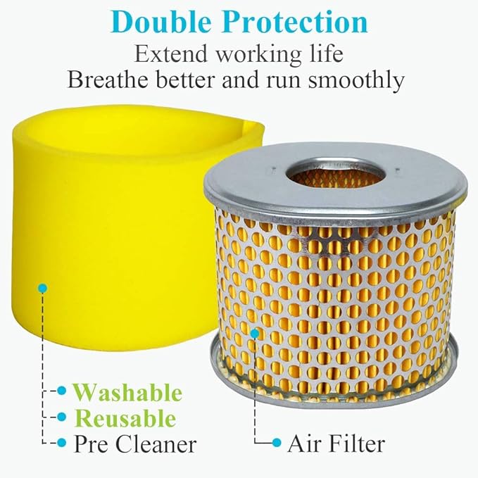 - Wide Compatibility: Double protection with pre cleaner, designed for extend element life. Premium air filter for Honda GX340 GX390 engine 11 HP 13 HP power pressure washer, water pump, lawn mower, tiller, cultivator, generator air filter.
