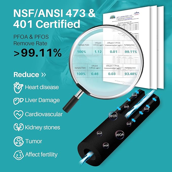 - Product Benefits : Removes certain pharmaceuticals and PFOA&PFOS for healthier, cleaner water
