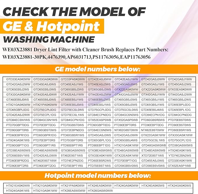 - ใ๐๐ข๐ ๐ฃ๐๐ง๐๐๐๐ ๐ ๐ข๐๐๐ใ--- WE03X23881 dryer lint filter replacement for ge dryer 4476390, AP6031713, PS11763056, EAP11763056. Compatible with Hotpoint: HTX21EASK0WW, HTX21GASK0WW, HTX21PASK0WW, HTX24EASK0WW, HTX24GASK0WW, HTX24EASK0WS, HTX24GASK0WS, HTX24GASK1WS, HTX21GASK1WW, HTX26EASW0WW, HTX26GASW0WW
