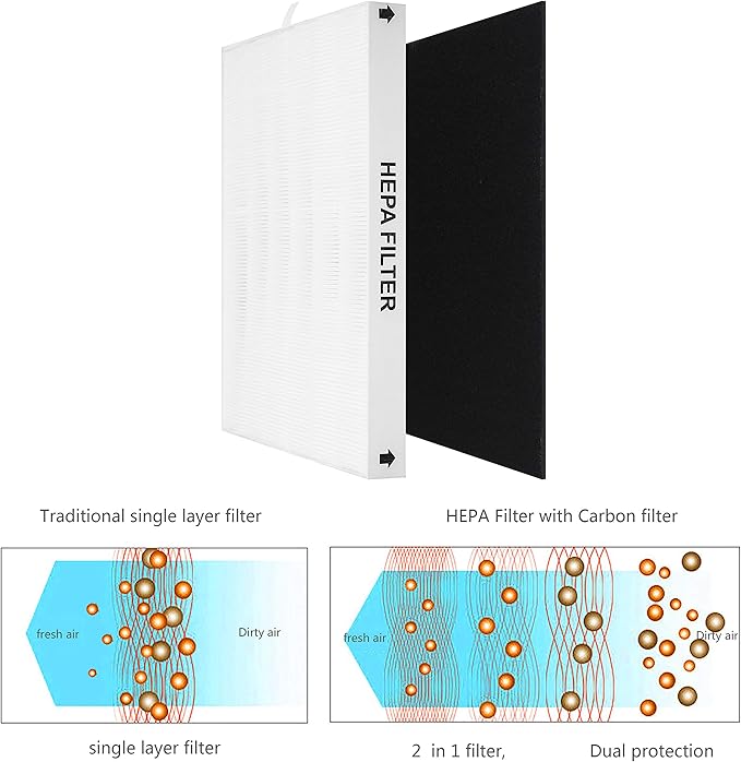 - 【SPECIFICATIONS】- Package includes 2* HEPA Filters + 4* Odor Pre - filters. Recommended to replace the filter on average 6 months or dependent on usage.
