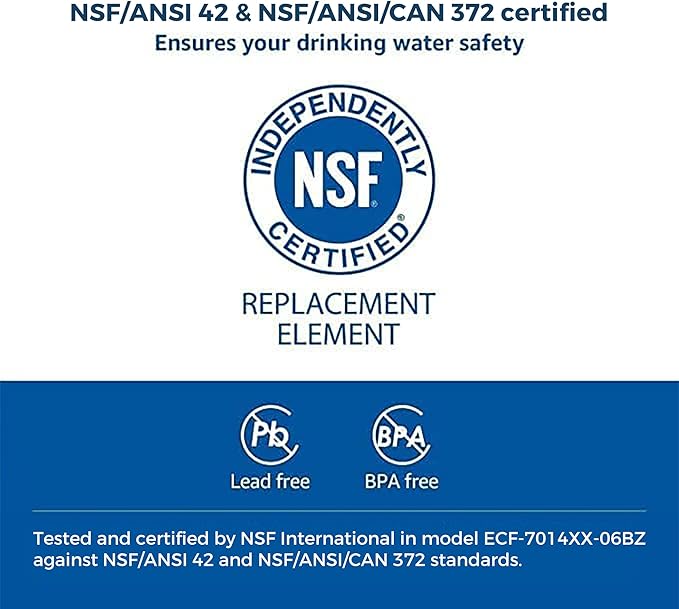 - NSF certifications:This filter has been certified against NSF/ANSI 42 for the reduction of chlorine, bad taste and odor. The material used to make the Waterdrop filter meets NSF/ANSI/CAN 372 requirements for being free of lead.