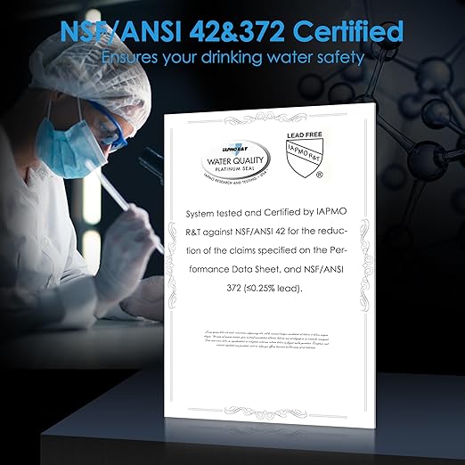 - NSF/ANSI 42 CERTIFIED: Based on independent testing, this filter can efficiently reduces PFAS, PFOA/PFOS, rust, lead, chlorine, heavy metals, and sand through thorough purification for clean drinking water. This filter is certified by IAPMO against NSF/ANSI 372 Standard and NSF/ANSI 42 Standard. Note: Does not reduce TDS