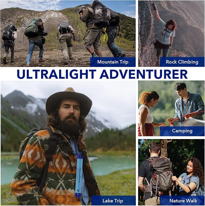 - 【Our Solutions For Life】NatureNova water filter straw is a camping gear and equipment with 4-step filtration. Hollow Fiber Membrane provide a blockage to suspended solids and create extensive membrane filtration space. The elastic strength of the membrane can get rid of up to 99.999999% tiny matters from raw water.