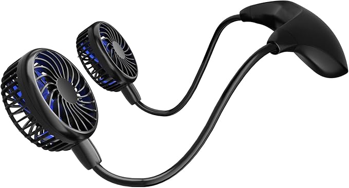- ❄️【Hands Free】The bottom design fits your neck perfectly, the twin neck fan 360° rotation adjust the airflow angle at will. It is suitable for travel, work, shopping, cooking, fishing and other scenarios, truly hands free.