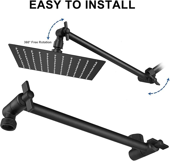 - Extra-Large Rainfall Shower Head: Extra-large 12 Inches with 144 high pressure silicon nozzles and 360 degree rotation stainless steel shower head, surface Chrome Finished, stylish and beautiful. Let you and your family enjoy amazing bathing every day