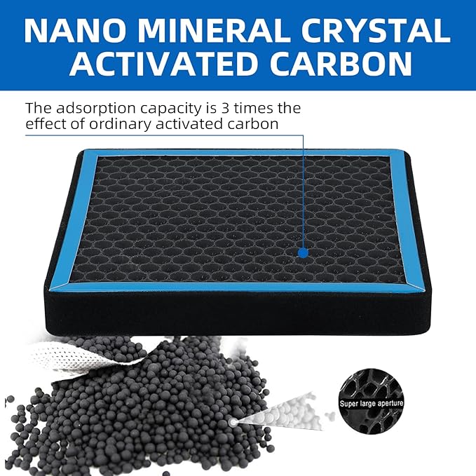 - 【Three Progressive Filtering Layers】: Melt blown electrostatic layer+ HEPA Filter layer+ Nutshell activated carbon.