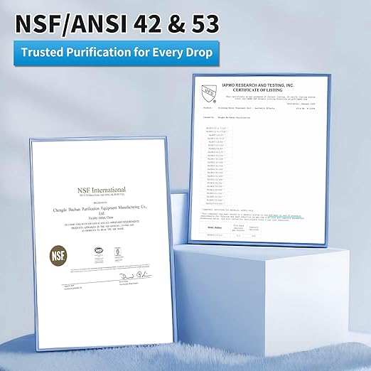 - [What to reduce]: 99.99% Lead, Chlorine, Odor, Sand, Rust, Benzene, Asbestos, Fluoride, VOC, Turbidity; Meets NSF/ANSI 53&42 standard