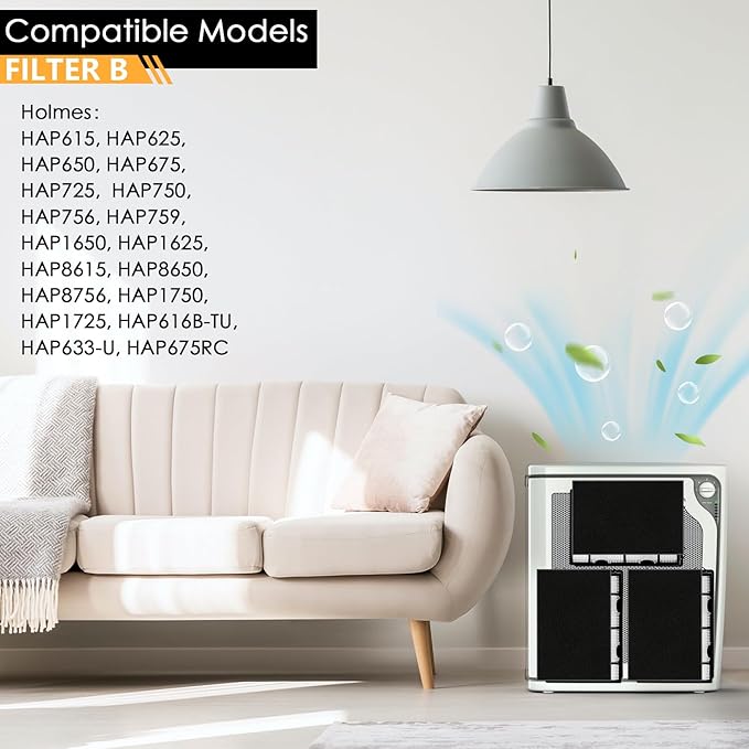 - FULLY COMPATIBLE : Highly fit for Holmes air purifier HAP615, HAP625, HAP650, HAP675, HAP725, HAP675RC, HAP750, HAP756, HAP759, HAP1650, HAP1625, HAP1750, HAP1725, HAP616B-TU, HAP633-U, HAP8615, HAP8650, HAP8756. Note: The use of brand and model is only for showing compatibility, not OEM products