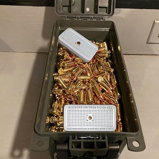 - 【Great Absorbing Capacity and Multi-Purpose】: Silica gel can protect up to 120 cubic inch each One grams of any enclosed / sealed storage space such as safe, ammo cans, ammo boxes, tool box, 3d printer filament sealed plastic storage box, weapon case, closet and provide a better solution keep moisture from guns, important papers, legal papers, collectibles, books, jewelry, photo album, shoes, camera lens, expensive camera equipment, toys, leather clothing, ammo, photo equipment.