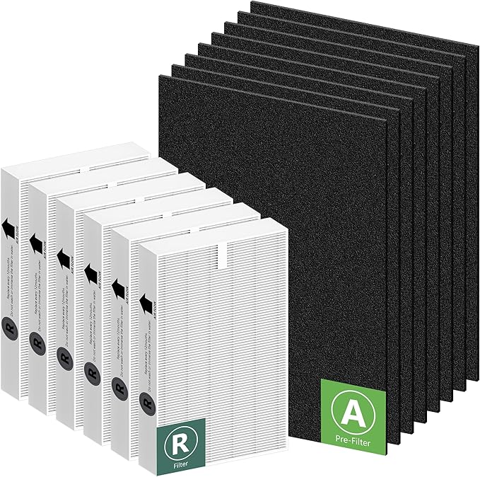 - ππ’π¦π§-ππππππ§ππ©π ππ’π’ππ¦ - Package includes 6 x HEPA R Filter and 8 x Pre-Cut Activated Carbon Filter. HEPA Filter R Dimensions: H: 10.2β x L: 6.5β x W 1.6β and Carbon Filter Dimensions: H: 17.2β x L: 14.2β x W 0.2". Never waste your time measuring and cutting prefilters again! Our HPA300 HEPA filter replacement combo set contains all the required filters to complete the standard installation of your air purifier (Please refer to the picture for details)