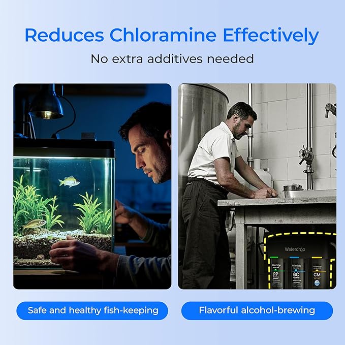 - 【𝐇𝐚𝐳𝐚𝐫𝐝𝐬 𝐨𝐟 𝐂𝐡𝐥𝐨𝐫𝐚𝐦𝐢𝐧𝐞】: Aquarists and Brewing/Pickling/Baking Enthusiasts Take Note! Chloramine must be removed from water in aquariums and hydroponic applications. According to the 𝐂𝐃𝐂, chloramine can kill fish due to their delicate internal organs, and it can also inhibit plant growth. Besides, chloramine can leach lead from pipes and cause 𝐫𝐞𝐬𝐩𝐢𝐫𝐚𝐭𝐨𝐫𝐲 problems, etc. According to the 𝐄𝐏𝐀, over 20% of Americans on city water drink water that has been treated with chloramines instead of chlorine. So, deal with chloramine quickly!