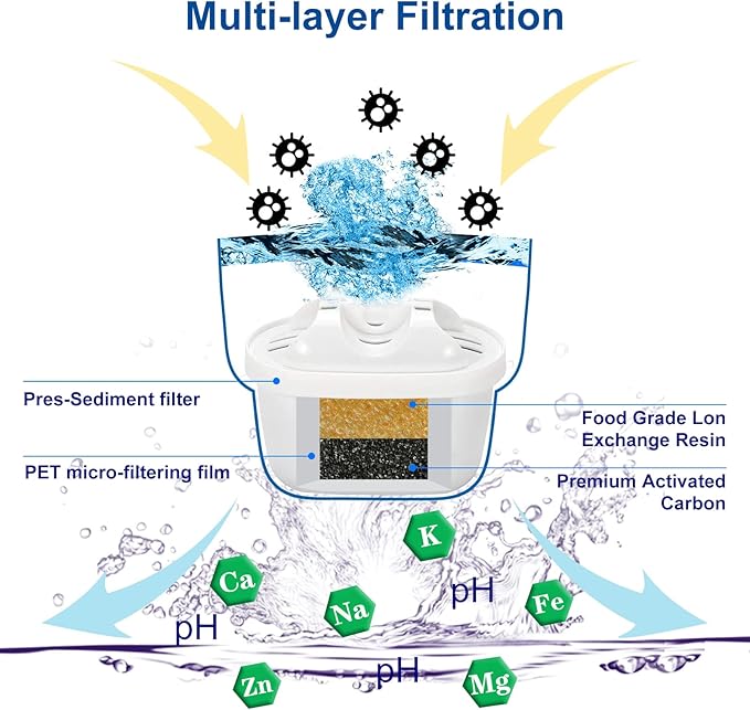 - 【Wide Compatibility】: Bewafia replacement for LEVOIT pitcher filters.Also fits Mavea Maxtra 1001122, 1001495,105731, 106832,Maxtra+, Maxtra Plus,Brita Style, Brita Fun, Brita Flow, Merella Cool, Mavea Elemaris XL ,and similar models.