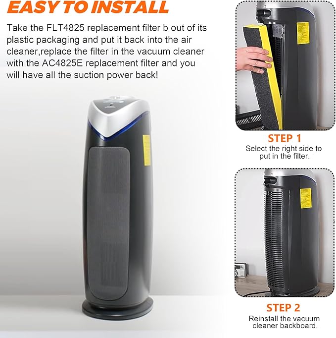 - √√【EASY TO INSTALL】:Caution! For your safety, turn off the power to the purifier before installing the ac4825e replacement filter. AC4825E replacement filter is easy to install without tools! FLT4825 replacement filter b are sealed ,for the long term. Remove filters from plastic packaging before placing them into air purifier. Simple installation tutorial can also let you no longer spend the effort to operate.To ensure the efficiency of your air purifier, we recommend replacing the flt4825 hepa filter b replacement once every 3-6 months, depending on how often you use it! You can find related videos online,which is more convenient. Save time,save money