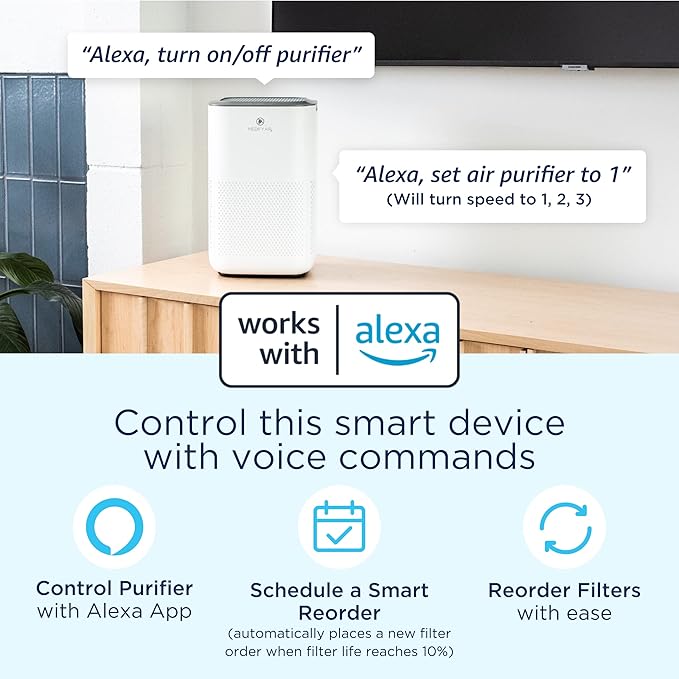 Medify MA-15 SMART Air Purifier | True HEPA H13 Filter | Works with Alexa, Certified for Humans | 660 ft² in 1hr for Removal to 0.1 microns for Wildfire Smoke, Odors, Pollen, Pets | White,1-Pack