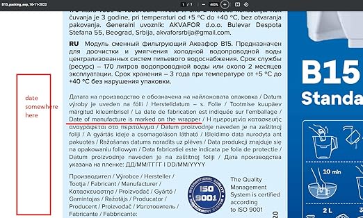 - Reduced Plastic Waste: By using the Aquaphor filter pitcher, you can reduce your environmental footprint by saving up to 340 single-use plastic bottles. This contributes to less plastic waste and a more sustainable lifestyle. Manufacturing Date: It's important to note that the date printed on the product is the date of manufacture, not the expiry date. Be sure to replace the filter cartridge according to the manufacturer's recommendations to ensure effective filtration.