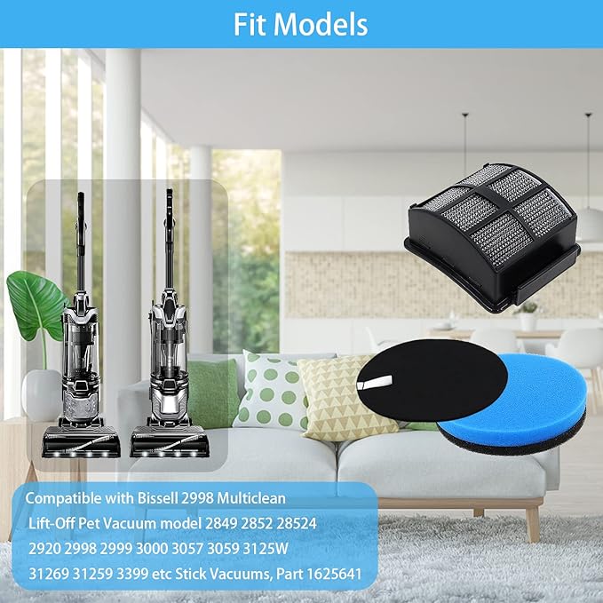 2998 Replacement Filter for Bissell 2998 MultiClean Lift-Off Pet Vacuum, Compatible with Bissell 2998 31259 31269 2999 2849 3000 3057 28492 3399 2852 3125W 28524 2920 3059 Vacuum