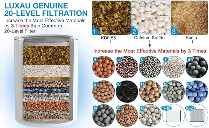 4 Pc Luxau 20 Stage (Also Fit 15, 18 Stage) Shower Filter Replacement Cartridge, Shower Head Filter Refill, for Hard Water Chlorine Heavy Metal, Skin Hair, Fit Any Similar Design Shower Water Filter
