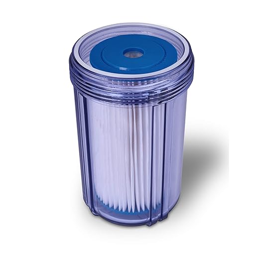 - š DURABLE STRUCTURE: 10āx 4.5ā Transparent High Capacity Housing is proper for high-flow and heavy sediment applications. The housing body is made of reinforced polypropylene for strength and resistance to chemicals, and the black cap is made of high-flow polypropylene for toughness. The cap has 1" inlet / outlet brass ports which allowed better sealed connections to the corresponding pipes. 10āx 4.5ā Pleated Washable Sediment Water Filter-Used for effectively removing most sediments from water