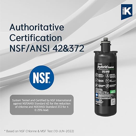 - [Water Filtration Functions] Pureal hybrid home is certified by NSF 42&372. This filter includes sediment, carbon block, mineral ball ceramics, KDF, and polyphosphate. It reduces chlorine, rust, dust, bad taste, odor, heavy metal, etc. This under sink water filter does NOT lower TDS, but it leaves a better taste of water and essential minerals such as Calcium, Potassium, Sodium, and Magnesium.
