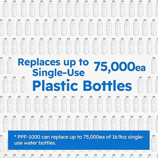 - [Money Saving and No More Plastic Bottles] This system has 10K Gallons capacity. One filter can make the same amount of drinking water as more than 75,000ea of bottled water. This cartridge with high capacity can be used for 1 year, for better filtration, suggest replacing it after 6-8 months. Not only lowering your costs but also reducing the waste of plastics.