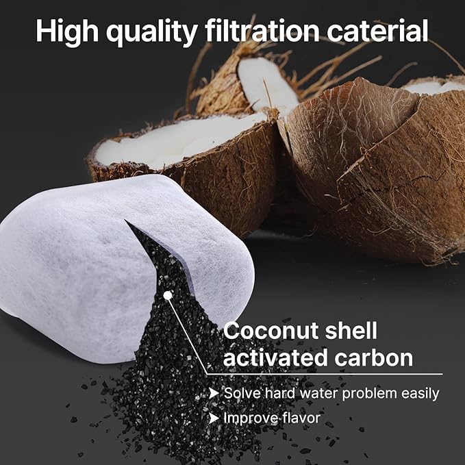 - Quality Filter Material: Clean and high-quality coconut shell activated carbon, Large pore structure, and strong adsorption capacity maximize improve the effective filtration, can remove most of the harmful stuff in the water, such as chlorine, incrustation, bad taste, and suspended impurities, Improves flavor create the best-tasting coffees.