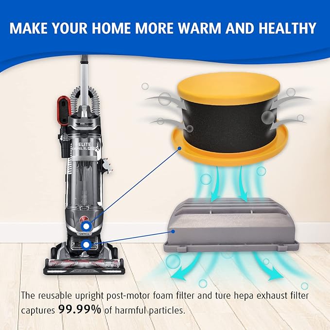 - The ture exhaust filter and upright pre-motor filter cut off 99% of particles, dust, pet dander as small as 0.3 microns and prevents them being released directly back into the air flow and impurities before it damages your motor