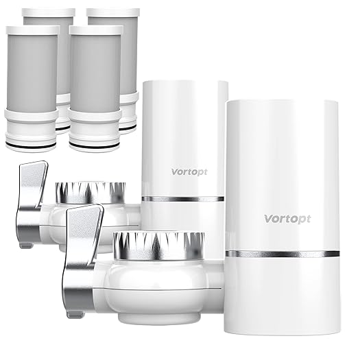 2 Faucet Water Filter for Sink, Rapid Flow - 400 Gallons Faucet Mount Water Filtration System for Tap Water, NSF Certified Reduces Chlorine & Bad Taste with 4 Replacement, T1