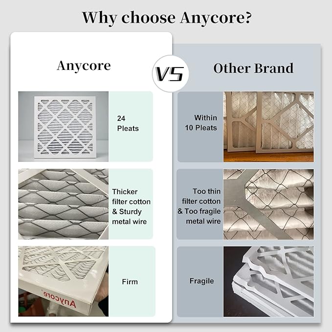 - MERV 11 Efficiency for Cleaner Air: Rated MERV 11 (Equivalent to MPR 1000/FPR 7). Anycore air filter 12x12x1 captures up to 95% of airborne particles without restricting airflow. Engineered with high-density filtration media to balance performance and system protection.