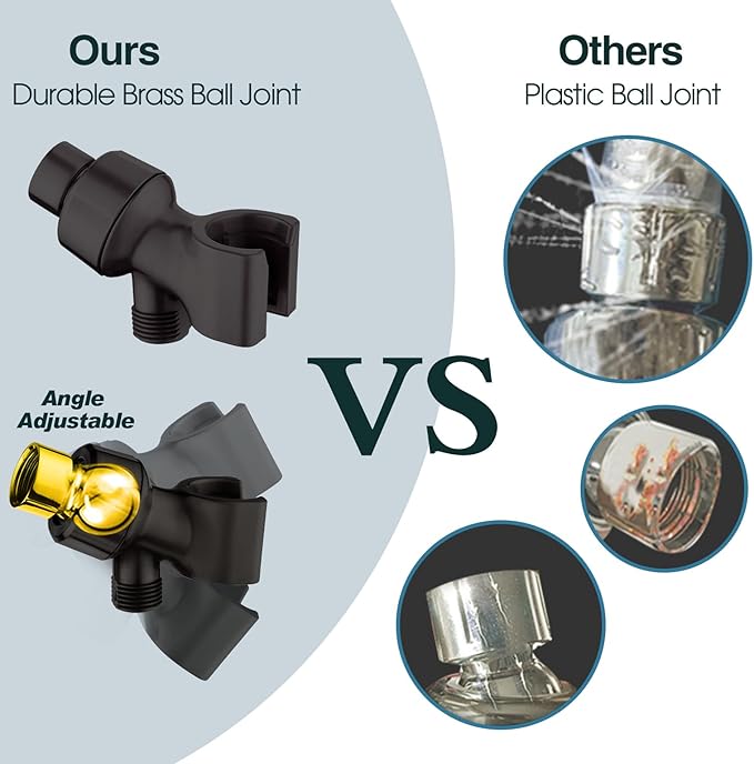 - Angle-adjustable Overhead Bracket - Durable solid brass swivel ball joint that won’t crack or leak for longevity. Easily adjust the shower head angle to your preference. Tool-free installation on a standard shower arm