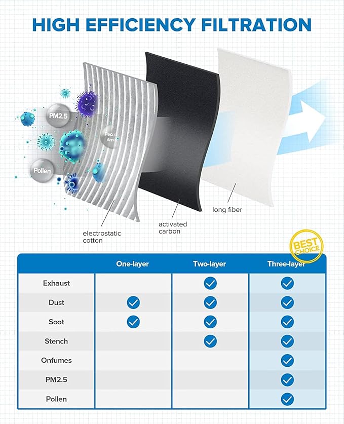 - Enhances HVAC Performance: The special structure of the long-fiber layer electrostatic cotton makes the dust-holding area times higher than other flat materials, with enough gaps for air passage to improves the heating and cooling efficiency of HVAC without musty odors in the car.