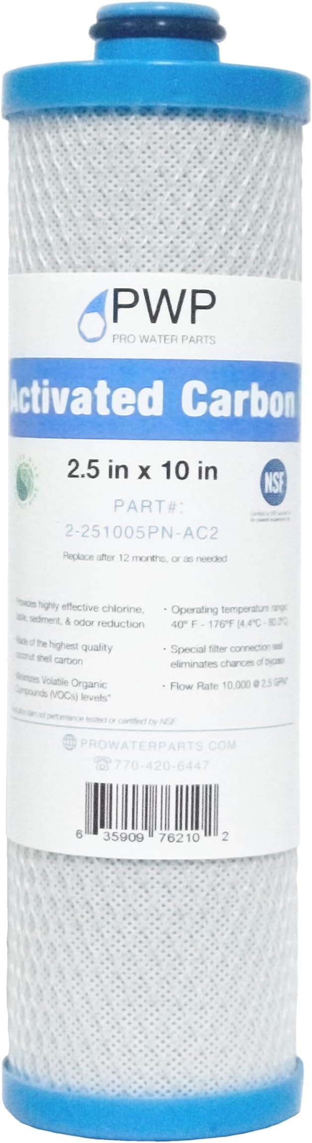 RV Water Filter Activated Carbon Block Push-Nipple Cartridge OEM 2.5 x 10" for RCS/FR1 Housing Replaces KW1 and FRE-10-BN