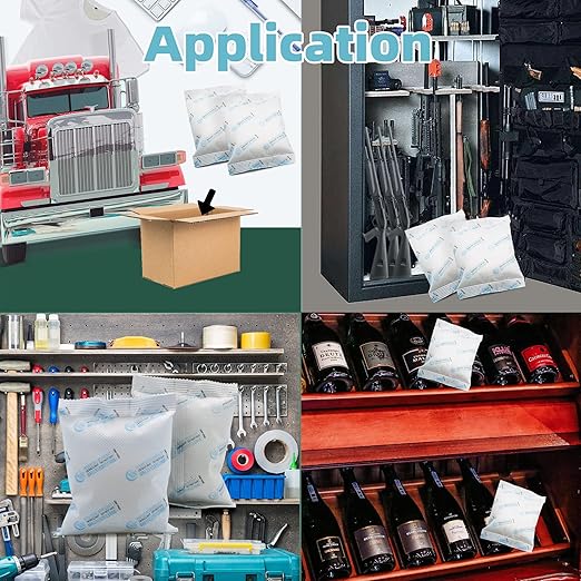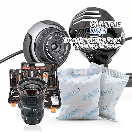 - Widely Used-The silica gel desiccant packets provide a better solution keep moisture from guns, important papers, legal papers, collectibles, books, jewelry, photo album, shoes, camera lens, toys, leather clothing, ammo. photo equipment,etc. This type of desiccant is also widely used in mental processing, machine manufacturing, electric manufacturing & clothing industries for moisture prevent and proper storage