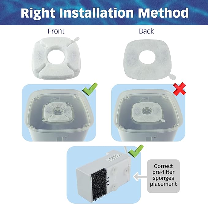 - [Frequency Of Replacement] To prevent the activated carbon dust from shedding into water, please soak the cat fountain filter in water for 2 minutes then rinse thoroughly under running water before using. 1 to 2 weeks in summer and 2 to 4 weeks in winter. If multiple cats are using the fountain, more frequent replacement will be necessary.