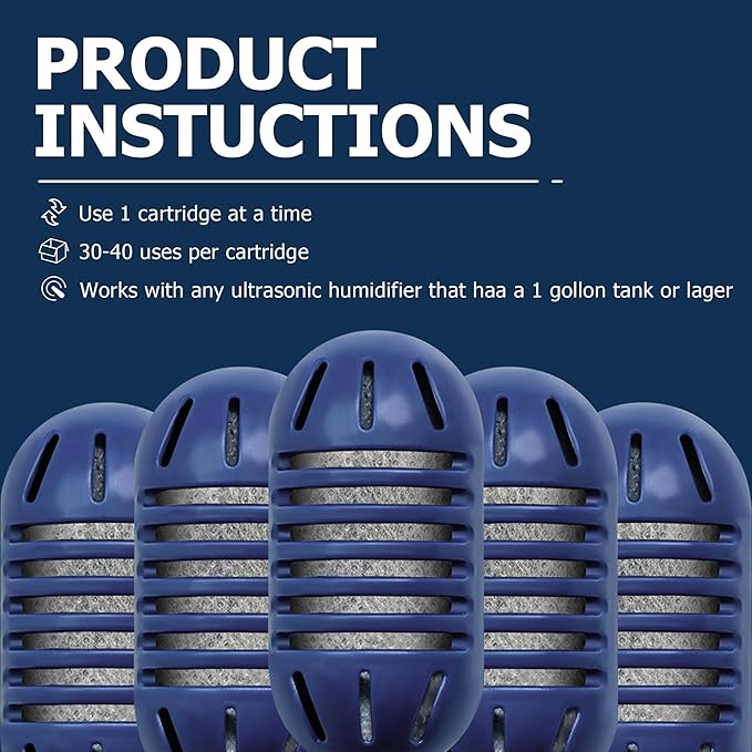 - šš«šššššš”š§ š£šš„šš¢š„š šš”šš - Our ultrasonic humidifier demineralization cartridges does a very good job of reducing the build-up of white powder caused by minerals in hard water. It efficiently purifies the water and prevents odor emission by absorbing the calcium, lime and magnesium ions contained in hard water. Besides, The demineralization cartridge helps keep your humidifier at its best working condition and capacity and lead to a healthier breathing environment