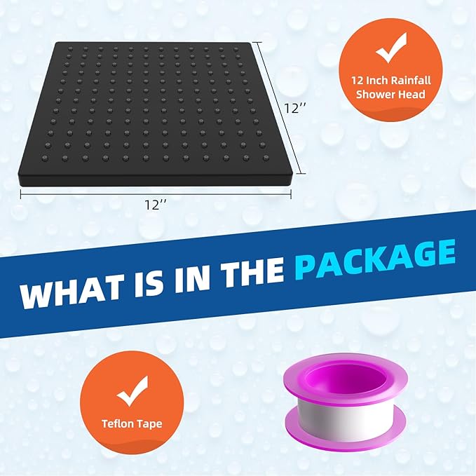 - High Pressure Shower Heads: Hibbent square shower head has 12 inch side and 0.6 inch thick. The combination of thickness and air intake technology optimizes the water pressure, and you can enjoy a comfortable experience even in low pressure