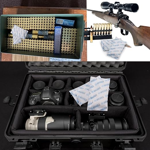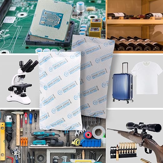 - Widely Used-The silica gel desiccant packets provide a better solution keep moisture from guns, important papers, legal papers, collectibles, books, jewelry, photo album, shoes, camera lens, toys, leather clothing, ammo. photo equipment,etc. This type of desiccant is also widely used in mental processing, machine manufacturing, electric manufacturing & clothing industries for moisture prevent and proper storage