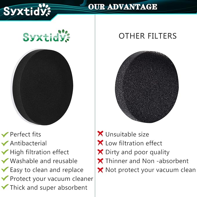 - 5 Pack Pre Motor Foam Filters, Washable and reusable