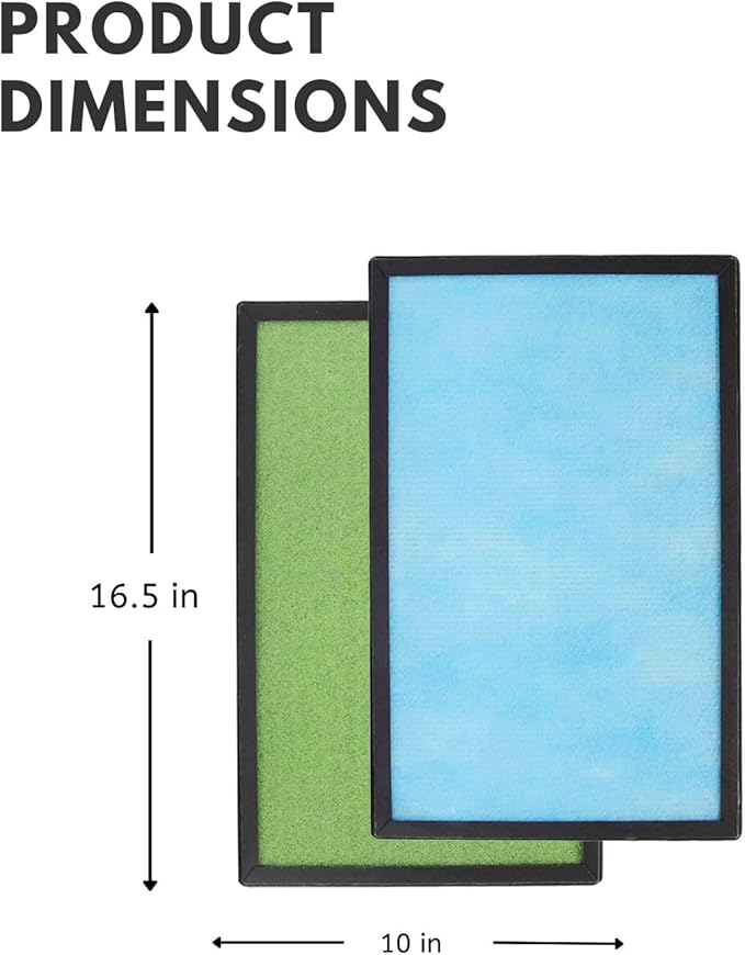 - 1 filter will be included. Suggest replacing the filter every 6 months to optimize the performance. Dimension: 16.5" x 10" x 1.5"