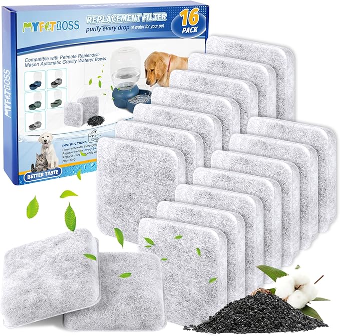 Dog Water Filter Replacement, Pet Fountain Filter Replacement Compatible with Petmate Replendish Mason Pet Water Fountain, Filter for Dog Water Dispenser -16 PACK